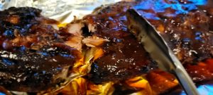 Look ya’ll, I love my smoker and my grill. But it’s January in Utah and they’re in the shed until March. That doesn’t mean I don’t have the hankering for my ribs, so I made these today and they were fall off the bone tender. No knife needed to cut these babies (see what I did there?), as they fell apart with the tongs as I was lifting them up. Thought I had grabbed some liquid smoke out of my chaotic pantry, but I accidently poured in some gravy seasoning that my mom always had around. So, they did not have the smokiness I prefer, but they were flavorful and tender and delicious. Here’s how I did it…..